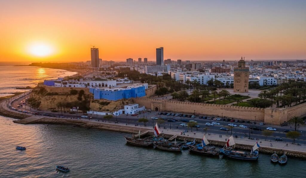 Terletak di pesisir Samudra Atlantik, terkenal sebagai kota modern dan bersejarah yang menjadi Situs Warisan Dunia UNESCO. Kota ini memadukan pengaruh Arab-Islam dan modernisme Eropa dengan situs seperti Menara Hassan dan Kasbah Udayas, serta sebagai pusat budaya dan industri tekstil yang signifikan.